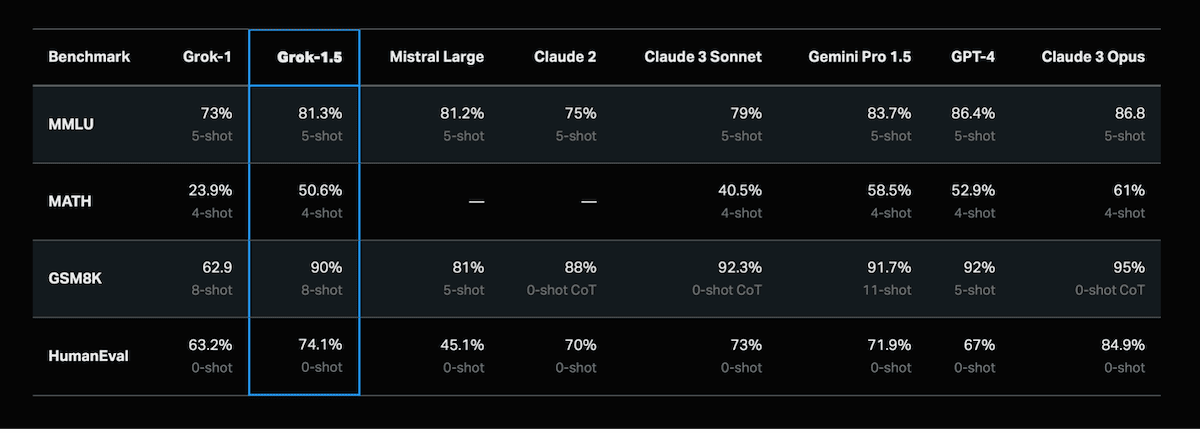 And by March 2024, xAI released Grok-1.5, which added advanced reasoning and problem solving to Grok.