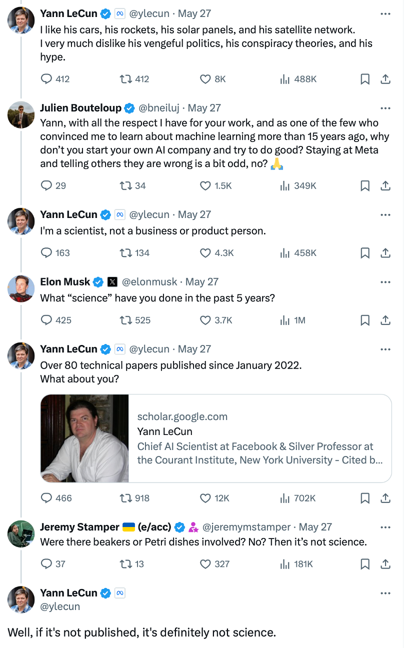 And yet, one of “godfathers” of AI, Yann LeCun, chose to pick a fight with Musk’s comments above.