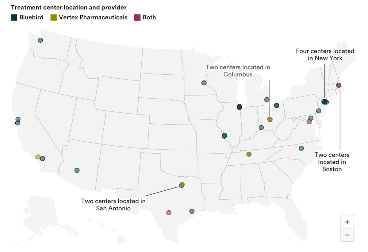 Bluebird Bio’s therapy is priced at $3.1 million, and the Vertex/CRISPR Therapeutics therapy is priced at $2.2 million.