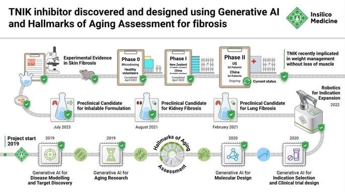 The most incredible part is that Insilico was able to move from the beginning of the drug development process of disease modeling and training of the AI… to Phase 2a trials in less than four years.